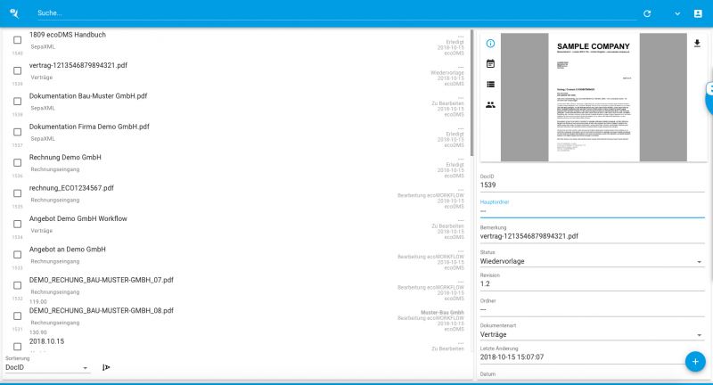 So kann der ecoDMS-Anwender im Büro oder von unterwegs unter anderem auf die Inbox für eingescannte Dokumente oder das Archiv bequem zugreifen, Dateien herunter- oder hochladen, die intelligenten Suchfunktionen inklusive Filtervorlagen nutzen oder Versionen verwalten. Dabei passt sich die Benutzeroberfläche automatisch der jeweiligen Bildschirmgröße an.