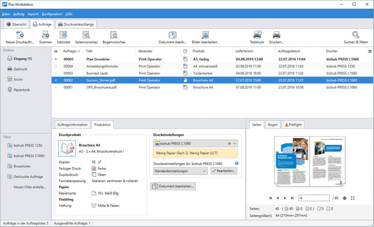 Exklusiv für Konica Minolta entwickelt dots Software vielseitige Lösungen für den Druckworkflow: AccurioPro Flux optimiert und automatisiert die Druckvorstufe und ermöglicht die effiziente Verwaltung von Druckaufträgen. Es vereinfacht die Arbeit im Team und erlaubt die schnelle und unkomplizierte Onlinebestellung von Druckprodukten.
