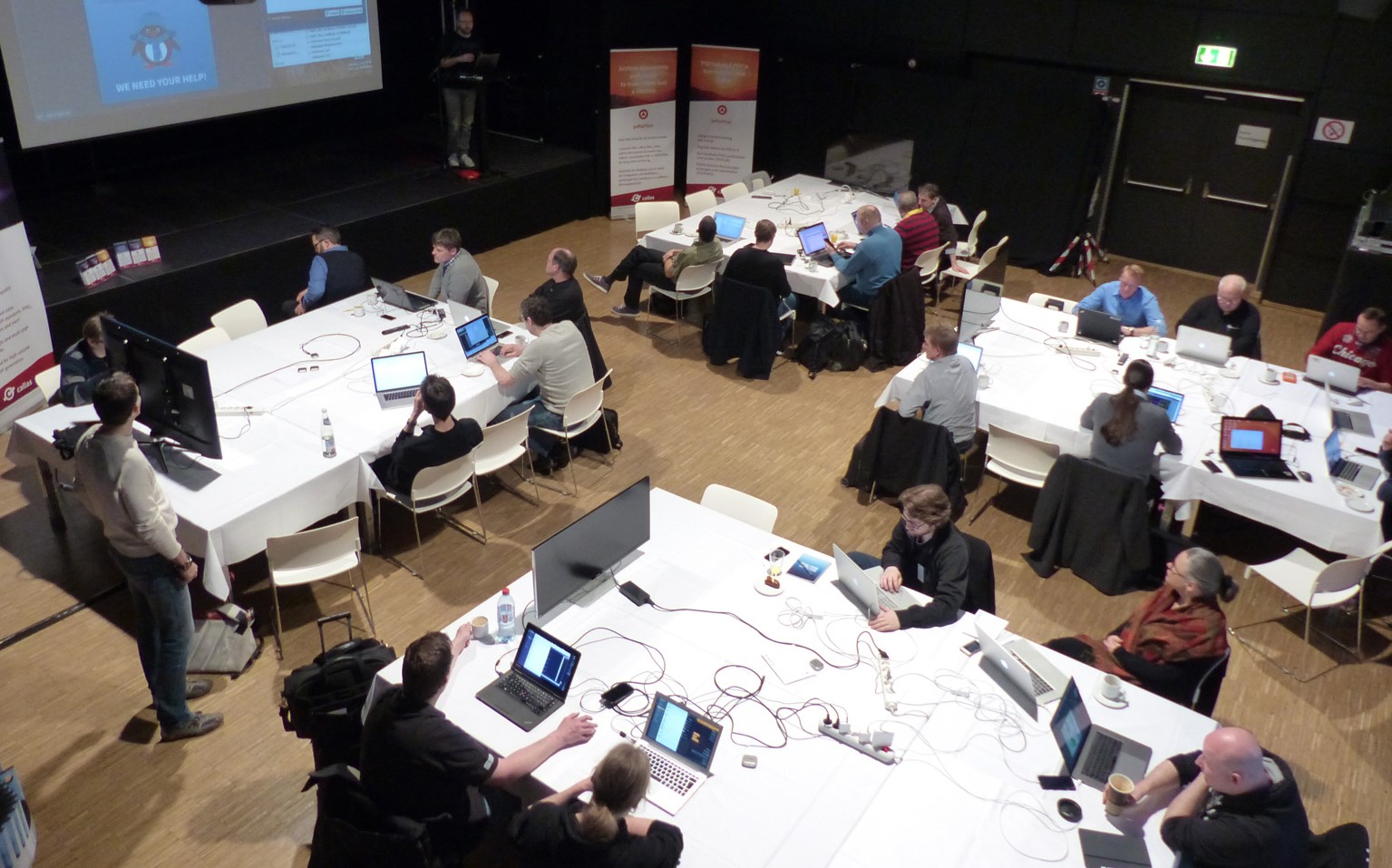 In kleinen Gruppen arbeiten die Teilnehmer praxisnah an Lösungen zu ihren individuellen Herausforderungen. Ob es sich um Produktionsprobleme oder Fragen zu Projekten handelt – alles dreht sich um die Themenwünsche der Teilnehmer. Diese können sich auf die Produkte pdfaPilot, pdfToolbox und pdfChip beziehen, die zum Testen zur Verfügung stehen, oder auf ein allgemeineres PDF-Thema. Dabei unterstützen Entwickler, Produktmanagement und Geschäftsführung von callas software die Anwender mit tiefem Fachwissen.