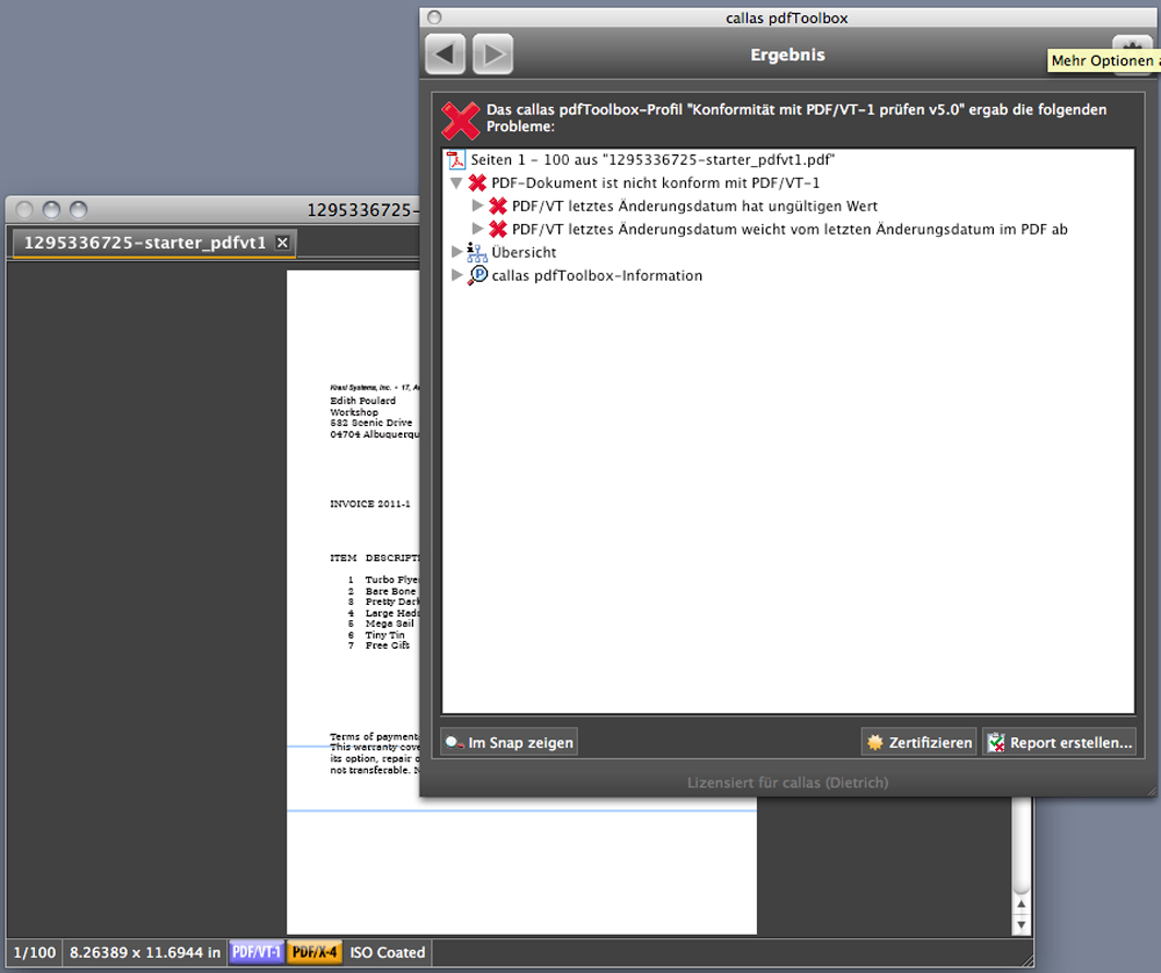 In der pdfToolbox 5 finden allgemeine Prüfungen der Druckbarkeit der Seiten statt. Es wird kontrolliert, ob die erforderliche DPM-Metadaten-Struktur konsistent ist und mit der Seitenstruktur übereinstimmt. „Sie beinhaltet Informationen zu den Seiten in einem PDF und erlaubt so die Organisiation des Outputs sowie den Zugriff auf bestimmte Seiten. Für den performanten Output von PDFs mit vielen gleich aufgebauten Seiten – zum Beispiel Rechnungen – ist es wichtig, dass die variablen Bestandteile unabhängig vom übrigen Inhalt sind. Dafür gibt es in PDF/VT den Begriff der eingekapselten XObjekte. Auch ihr Aufbau und ihre Unabhängigkeit werden geprüft“, erklärte Dietrich von Seggern, Business Development Manager bei callas software.