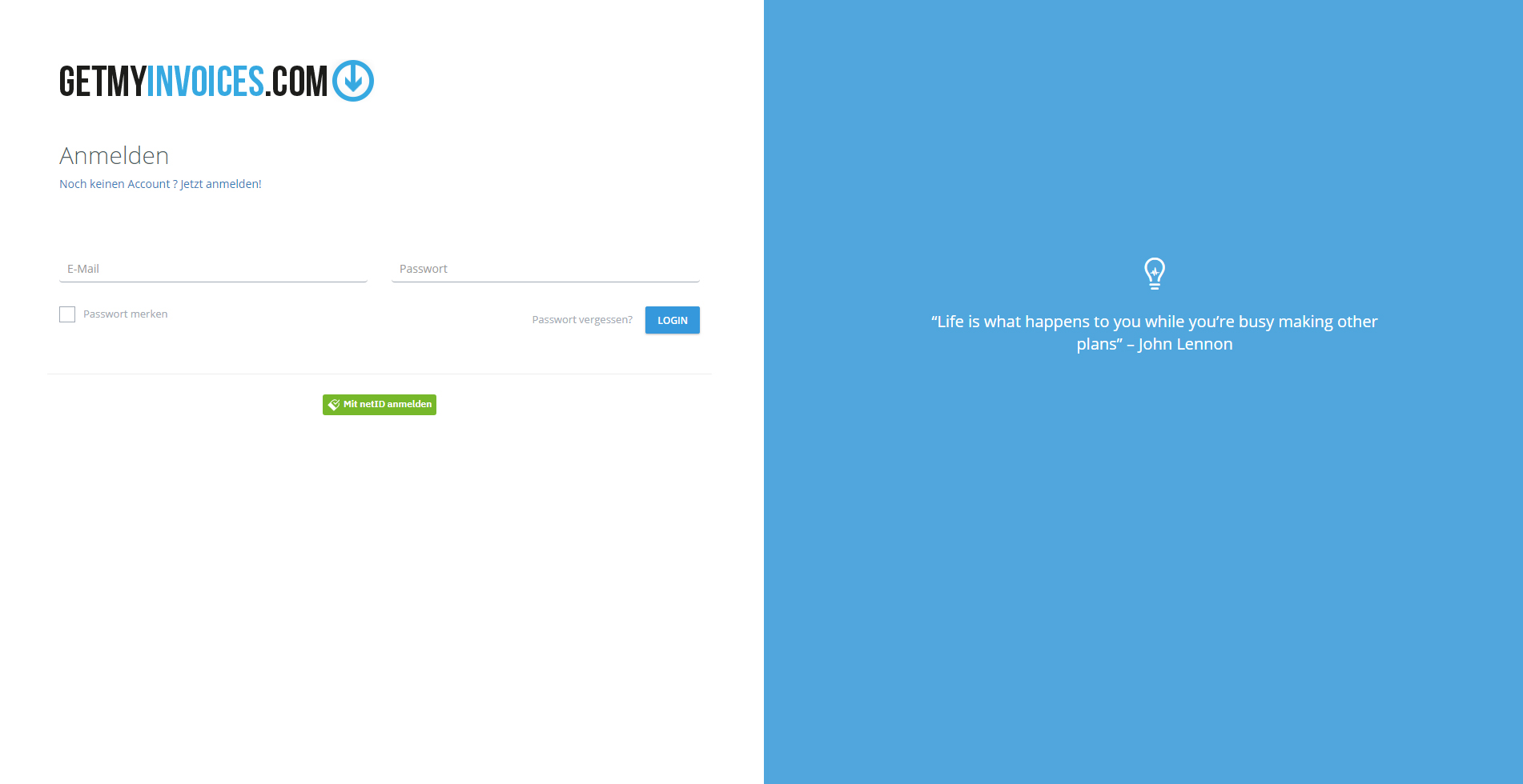 Kassel. Anwender der Rechnungsmanagementlösung GetMyInvoices können sich ab sofort noch bequemer in ihr Konto einloggen und Interessenten noch schneller eines anlegen. Dafür sorgt eine Integration des offenen Login-Standards netID. Sie bietet die Möglichkeit einer sicheren Identifizierung und Authentifizierung der Anwender, die dabei stets die Hoheit über ihre Daten behalten.
