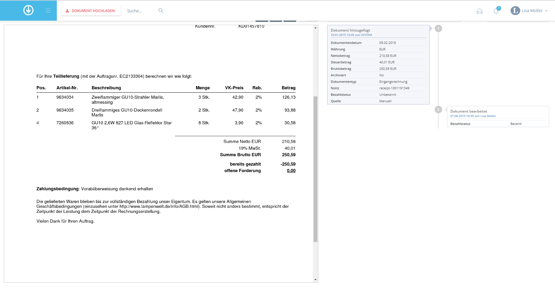 Darüber hinaus erfüllt GetMyInvoices – nach wie vor – die zehn Merksätze des Bitkom und des Verbandes elektronische Rechnung, welche die wichtigsten Anforderungen an die elektronische Archivierung widerspiegeln. Somit unterstützt GetMyInvoices Unternehmer, Selbstständige und Freiberufler bei der GoBD-konformen Archivierung von Rechnungen sowie anderen Dokumenten. „Berücksichtigen sie darüber hinaus die erforderliche Verfahrensdokumentation, deren Änderungen im Übrigen gemäß den GoBD 2.0 unbedingt historisch nachvollziehbar sein müssen, können sie die Vorgaben der Finanzverwaltung ohne großen Aufwand einhalten, während sie gleichzeitig von den Vorteilen eines automatisierten Rechnungsmanagements profitieren“, so Björn Kahle.