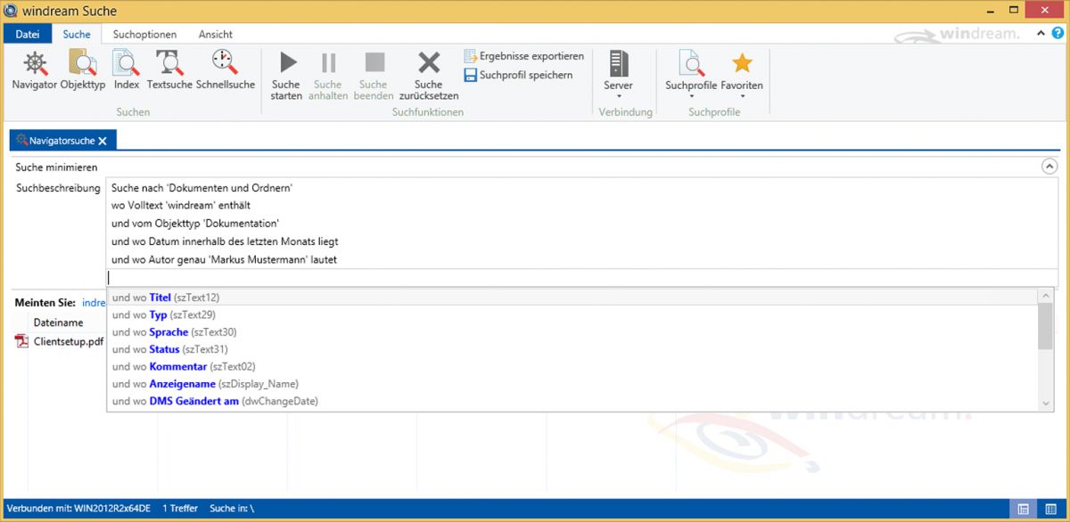 Die in windream integrierte Recherche-Anwendung verfügt jetzt über einen neuen, intelligenten Smart Search Navigator. Er unterstützt Anwender beim schnellen Wiederfinden von Dokumenten durch gezielte Vorschläge. Die Vorschläge werden vom ECM-System automatisch angezeigt, sodass das System dem Anwender auch bei komplexen Recherchen in riesigen Dokument-Archiven effiziente Hilfestellung bietet. Auch das Modul zur Dokumentvorschau wurde in die Recherche-Anwendung integriert.